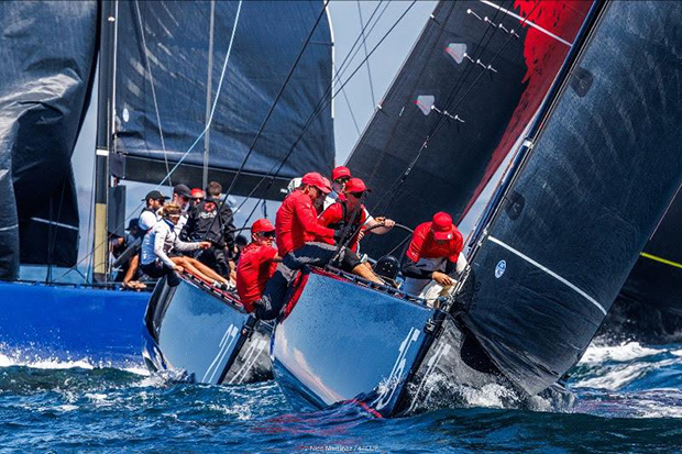 Today’s practice starts and racing for the eight owner-driver one design RC44 racers took place in perfect conditions, with sun and 12-14 knots. Conditions over the next four days look more varied with light southwesterlies tomorrow, brisk 20+ knot westerlies on Friday, into the high teens on Saturday and high teens to low 20s for Sunday’s concluding races.