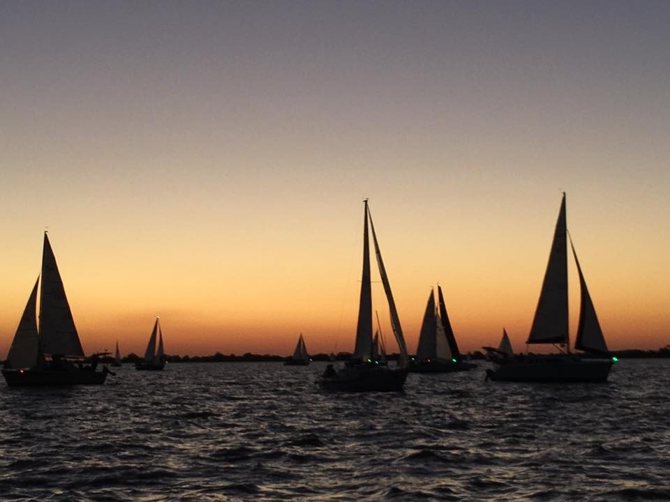 The starting line is at Marlay Point at sunset, and the course takes sailors across broad lakes and through narrow straits, all under the cover of darkness, adding its own challenges and excitement.