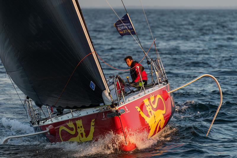 With the mark behind them, spinnakers went up for the long slide down to the next waypoint: the Daffodils cardinal buoy, off Dieppe. Another Channel crossing lies ahead, but this long run should give the solo sailors a chance to regroup: grab food, snatch some rest, and think ahead to the next tactical calls.