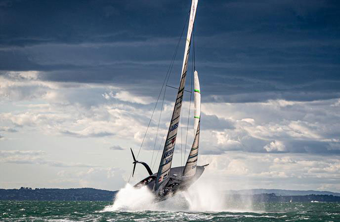 The flared bow which had attracted much comment at her launch really came into play, along with the full forward sections, saving the AC75 from a real disaster.
