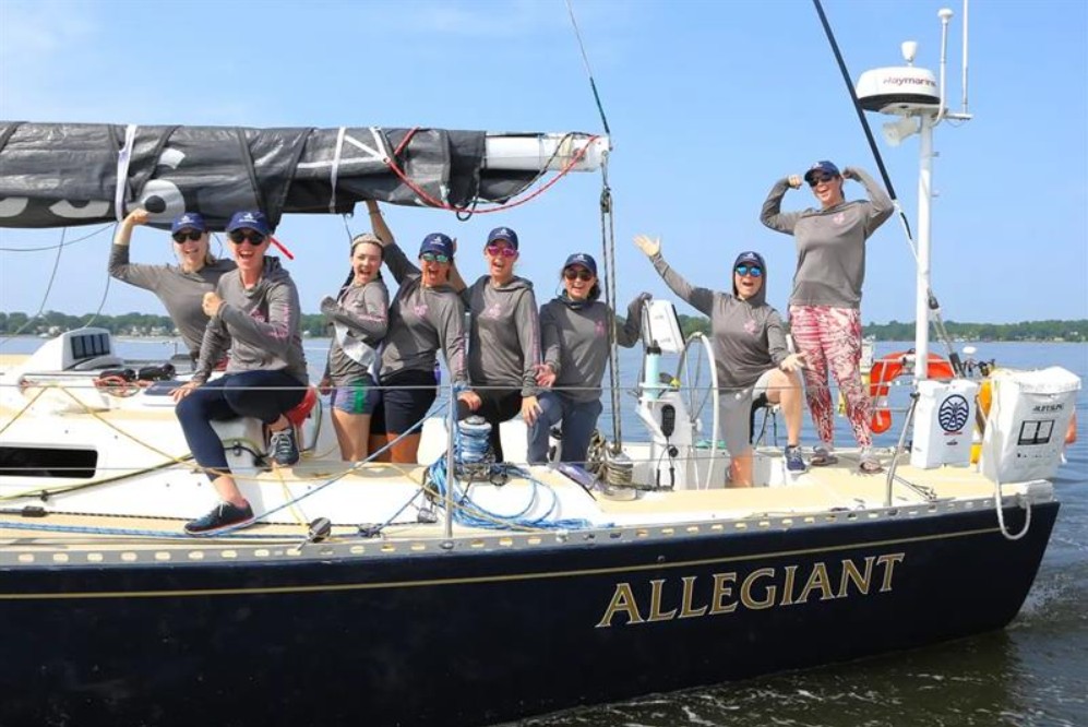 Team Allegiant didn’t just finish the race. They battled through calms and squalls, fighting for every nautical mile, even if that meant anchoring just before the exit of the Chesapeake Bay when the wind died. They later surfed down waves in 20 knots. Their finish ranks 9th in the competitive PHRF class, 44th out of 71 boats overall – becoming the first all women’s crew to ever complete the storied A2N course.