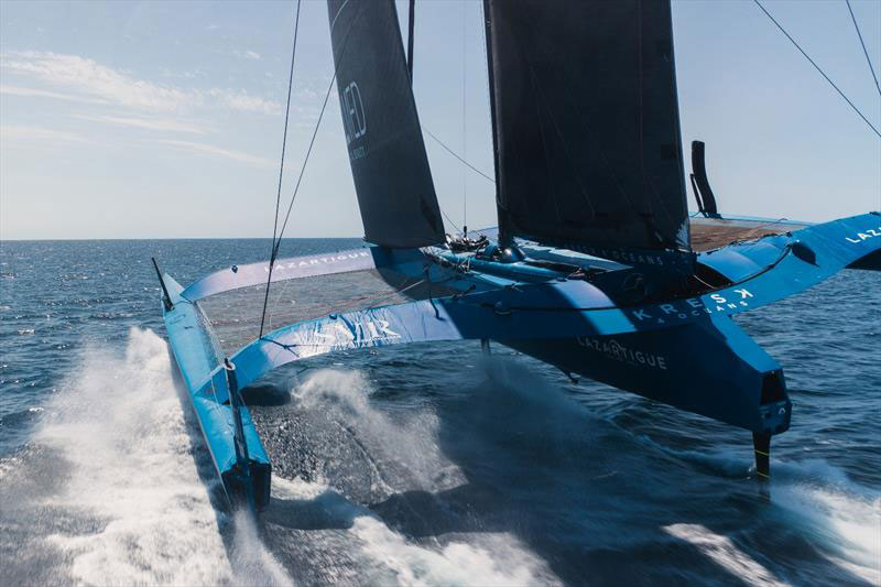 That Laperche is very much an ‘old head on young shoulders’ was immediately evident when the young Breton was presented to the crowds in Brest on Saturday. Since discovering cracking in the front beam of SVR-LAZARTIGUE his team have faced a race against time to have the giant blue Ultim ready for Sunday’s start of the ARKEA ULTIM CHALLENGE-Brest solo round the world race.
