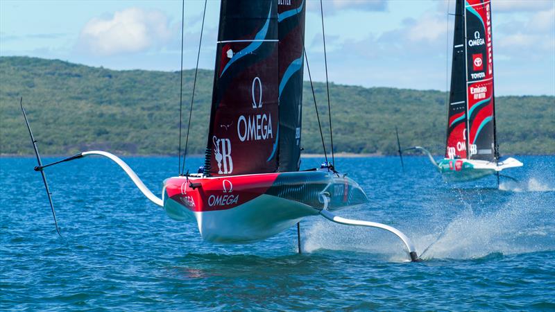[AC37 Joint Recon team: Sam Thom and Andrew Burgess]Day 74 of sailing in the Hauraki Gulf for ETNZ consisted of more two-boat testing for LEQ 12. The AC40 OD departed from the dock around 1200hrs in a very light, northeasterly breeze, planning to spend some additional time on the water before the “A-Team” joined for race simulation practice.