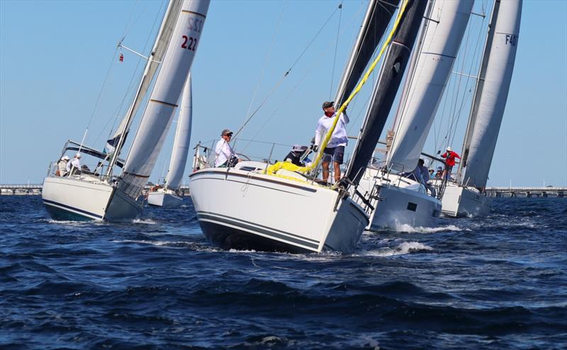 Racing on the Viper-F15 course provided an unexpected spectacle for the boats during their tram from the marina to the start line at the end of the Jetty. However, things soon got serious as the RO put the various fleets into sequence and let them loose on the morning’s passage race.