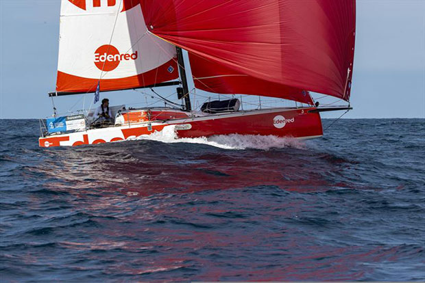 Basile Bourgnon (Edenred), this afternoon: “We are finally progressing in conditions conducive to going fast, it is comfortable for the skipper and the boat which is going faster. And unlike yesterday, the weather is nice. We’re almost in shorts! I’m sailing, I’m happy and enjoying the sport, I’m in the game, at least I think so, even if I don’t see Corentin (Horeau). I follow Loïs (Berrehar) closely. We have a bit of the same strategy. For now, as long as there is wind, everything is fine. I’m enjoying it, I’m not sure I know how to manage stress, so I’ll try to just focus on sailing well, as I have done so far. It’s working. There is no reason why it should not work on this stage. On the AIS (Automatic Identification System), I see my mates who are 4-5 miles away: Alexis (Loison), Elodie (Bonafous), Gaston (Morvan) or even Loïs, but not the rest of the fleet. We regularly call each other on the VHF with Loïs. We talk, we’re friends. Everything’s rosy as long as he’s not in front!”