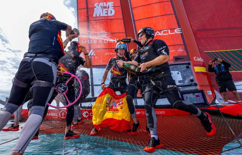 After an emotional rollercoaster to make the final – having to wait to see where Canada finished on the race course in the day’s second fleet race – the Spanish team had its work cut out. Going head to head with the two top teams in the league – taking on the skilled Peter Burling’s Black Foils and reigning champions Tom Slingsby and the Australia SailGP Team. The Spanish sailed a very strategic final race to secure first place – with the Black Foils in second and the Aussies in third – in front of a roaring crowd at the newly located Race Stadium at Morgan’s Point.