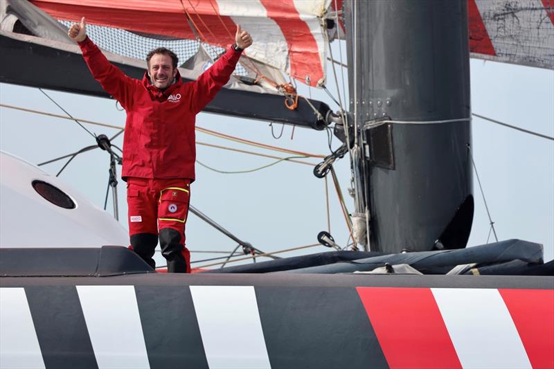 Éric Péron sailing ULTIM ADAGIO crossed the finish line of the ARKEA ULTIM CHALLENGE - Brest at 14 h 44…