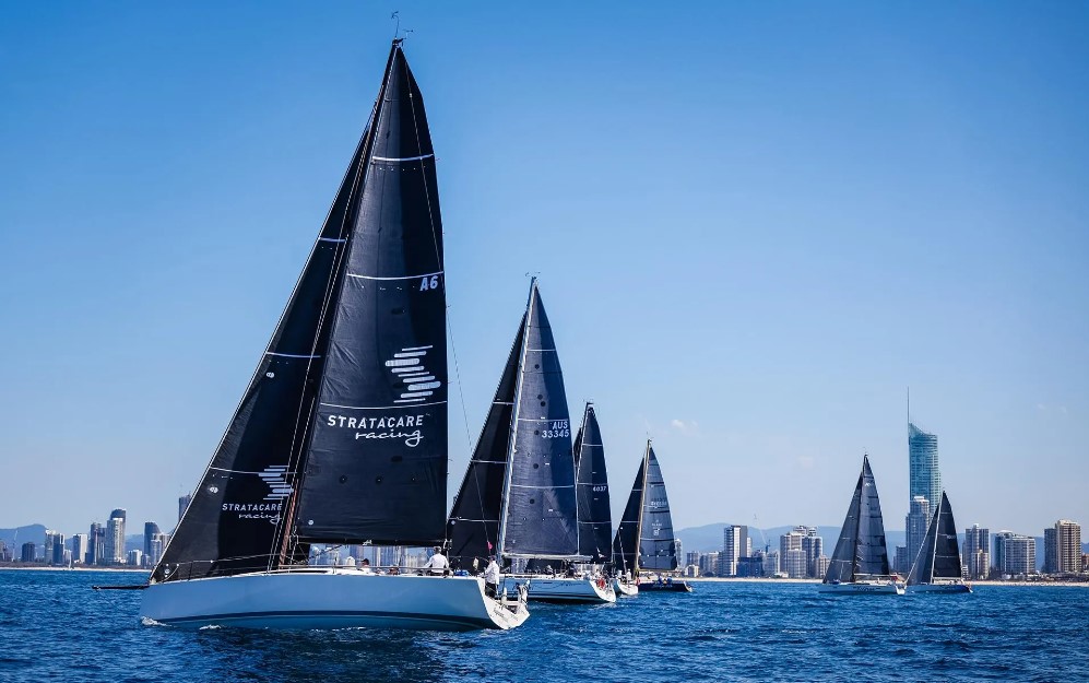 It was a fortuitous call by Race Control to squeeze in 3 races on Day One, allowing the Championship Regatta to complete with a final single race 6 today. After Race 5 on Day Two yesterday, current standings for the QLD Yachting Championship sit close in IRC between Glenn Burrell’s ‘Black Diamond’, James O’Hare’s ‘Stratacare Racing Flyaway’, and Garry Holt’s ‘Lets Get It On Filabe’, who is tied with David Rose’s ‘Wedgetail’ in 4th, who are only just 1 point ahead of Steve Curtis’ ‘Aramex’.